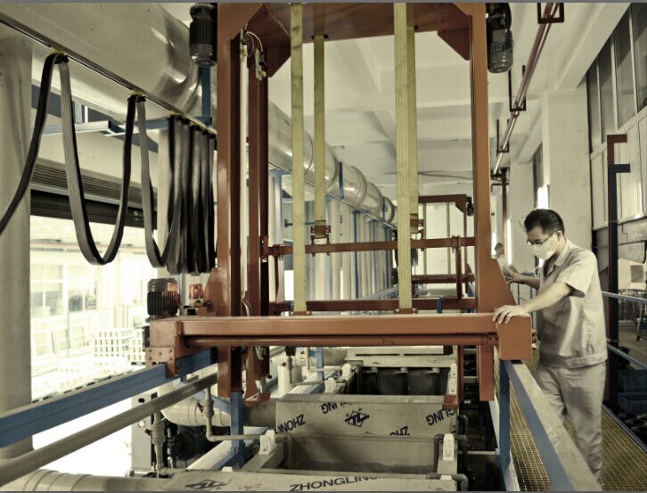 第一条生产线是2012年建成的,主要是对金工和腰轮的壳体、叶轮、机芯、转子、端板、端盖等关键零件进行阳极氧化处理。对不同材料的壳体及零部件进行阳极氧化处理时,其电解液温度、电压和工序是不同的,工艺要求也不一样,需要进行分批处理。如:金工车间壳体进行硬质阳极氧化时,溶液内温度要调至6~9度;而腰轮车间G10~G400-4〞 壳体进行硬质阳极氧化时,溶液内温度是0度;另外,在进行硬质阳极氧化之前还要放入酸洗槽,进行化学抛光处理。这样,不仅操作工序繁杂,而且时间上也比较漫长,效率不是很高。因此,现增设了第二条阳极氧化生产线,运行后,可以两边同时进行阳极氧化处理,工作效率得到了明显的提高。